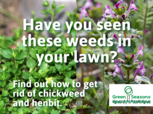 Chickweed and Henbit are both winter annuals. A winter annual is a plant whose seed germinates during the cool fall temperatures. During the following spring, the plant can grow very vigorously while blooming and producing seeds. When the summer weather arrives and the temperature increases, the chickweed and henbit plants will usually die on their own, but their seeds are now in the soil to start the cycle over again later on in the fall.